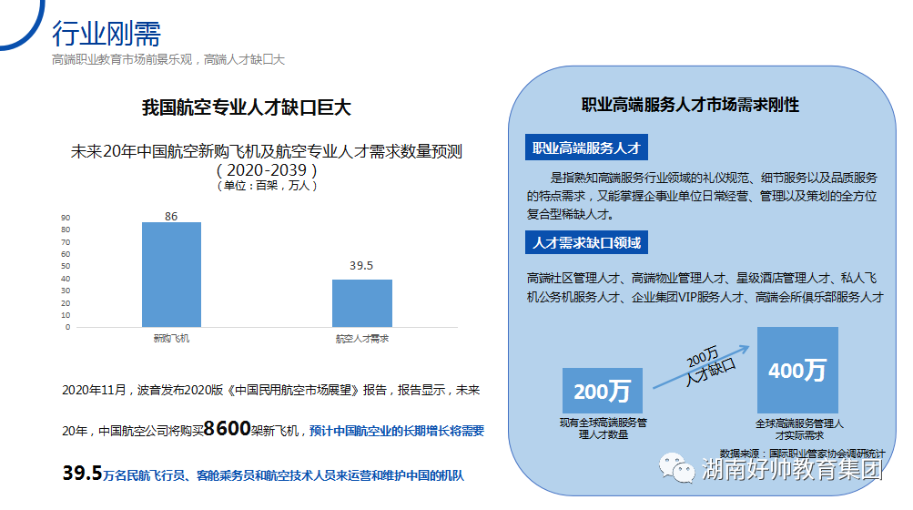 据统计,未来十年我国航空运输业人才缺口约为130万人,平均每年缺口13万人,而传统的民航直属院校的有效供给每年才1.5万人,因此在今天这个大学生甚至硕士生都难找工作的时代,空乘专业毕业生就业率仍连年接近100%,特别是为了吸引优秀人才加入空乘队伍,各大航空公司的选人倾向逐渐从单一的服务型转向多元的综合型,更加看重空乘人员的学习能力、抗压能力、团队协作能力和问题解决能力。因此,综合素质较好的非民航专业大学生成为了空乘人才的优先选择。